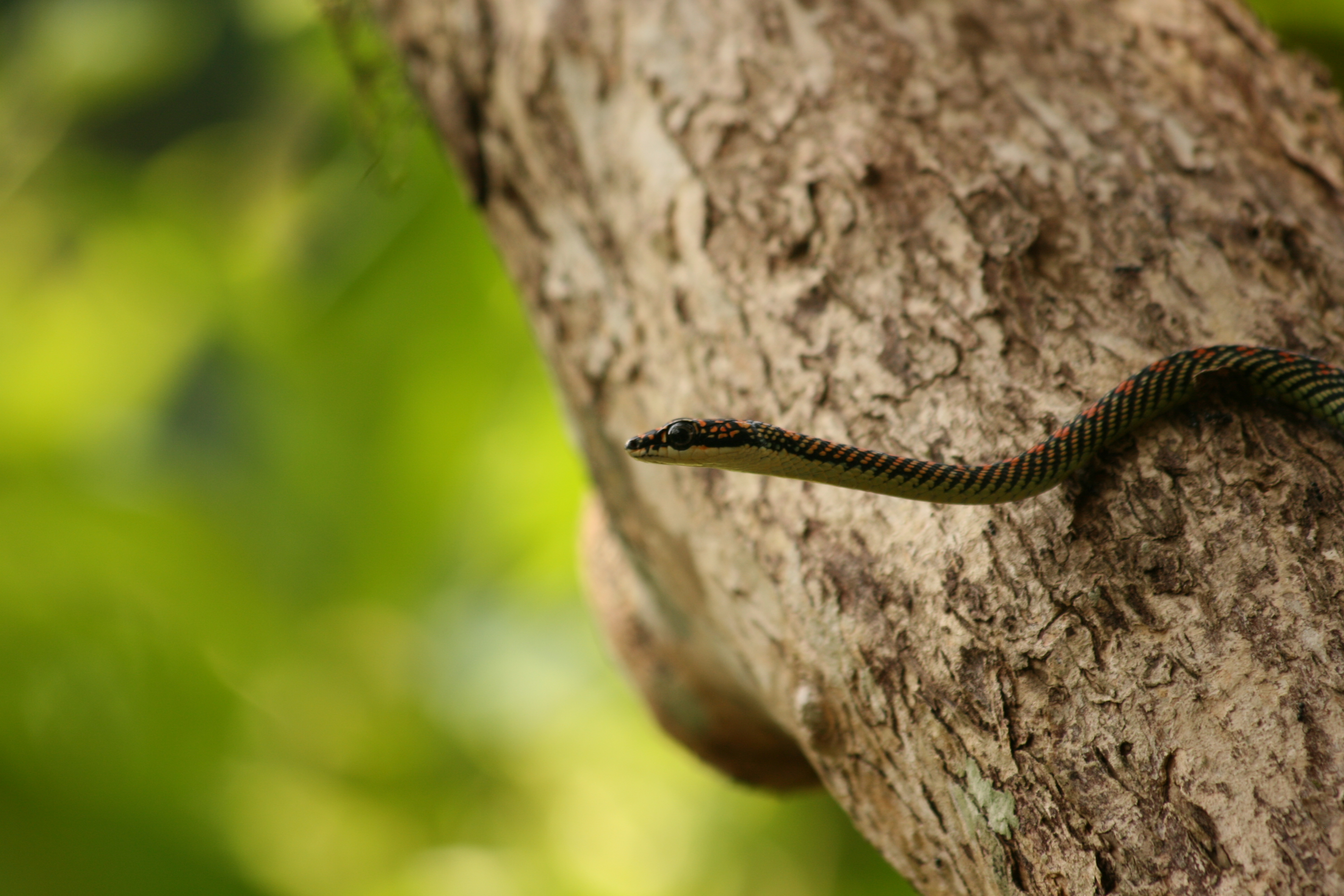 [Aug'11: Khao Sok National Park, Thailand] Vacationing in Khao Sok was a blast! Our treehouse buddy was this guy—a snake who clearly ran the local branch of a Computer Vision Corp. Just that it was truly my energy minimizing, and a deformable spline like in vision. On the same treehouse as ours it appeared to hold board meetings and the birds gossip about possibly the futility of human existence!